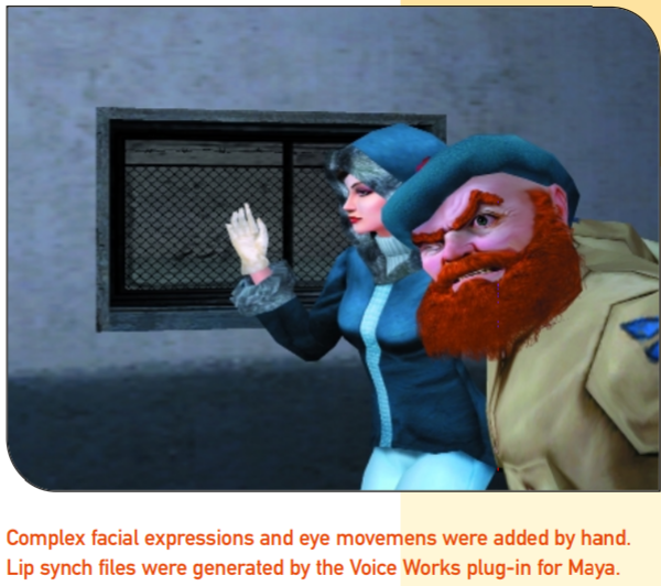 By contrast, I finished the NOLF 2 cinematic script very early in the project. Once it was approved, we scheduled motion capture and placeholder voice sessions, which allowed me to implement first-pass cinematics that we could review for pacing, clarity, and continuity. Gradually, we began to finalize sets, animations, voice work, and pacing. Scott Albaugh, our primary character artist and animator, added the final polish with detailed facial animations and hair and finger movement. These touches really brought the cutscenes to life.